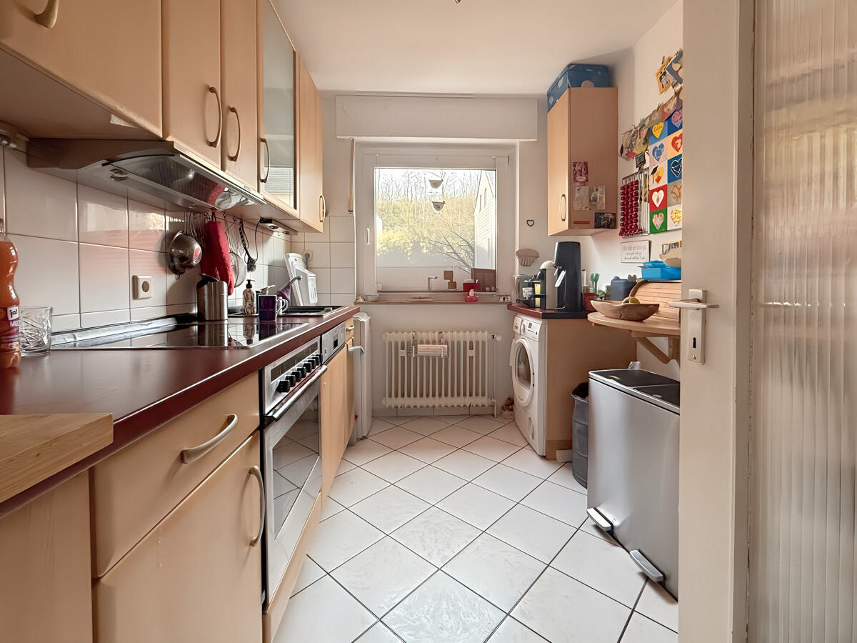 In beliebter Lage von Essen wird diese gut geschnittene Eigentumswohnung zum Kauf angeboten. Die ca. 72 m² große 3,5 Zimmer Wohnung befindet sich im Erdgeschoss eines gepflegten Mehrfamilienhauses im viel nachgefragten Stadtteil Kettwig. Das Objekt besticht bereits beim Betreten durch Helligkeit und Freundlichkeit, die sich in allen Räumen fortsetzt. Unterstützt wird dieser Eindruck durch den Wohn- und Essbereich, welcher mit großen Fenstern ausgestattet ist. Von hieraus gelangen Sie auf den Balkon, auf dem Sie viele Sonnenstunden genießen können. Die Küche bietet Ihnen genügend Platz, auch um eine Waschmaschine und einen Trockner unterzubringen. Im Schlafzimmer lassen sich problemlos ein großer Kleiderschrank und ein Doppelbett unterbringen. Nebenliegend befindet sich ein weiteres Zimmer, welches derzeit als Arbeitszimmer genutzt wird. Das helle Tageslichtbad ist mit einer Badewanne ausgestattet. Natürlich gehört auch ein Kellerraum sowie ein Gemeinschaftswaschraum auf dem Dachboden zu dem Angebot dazu. Im Badezimmer und in der Küche wurden zuletzt 2007 neue Fliesen aufgebracht. Die Beheizung erfolgt über eine ca. 5 Jahre alte Gastherme. Direkt vor dem Haus befindet sich ein Spielplatz, der 2022 vollständig erneuert wurde.